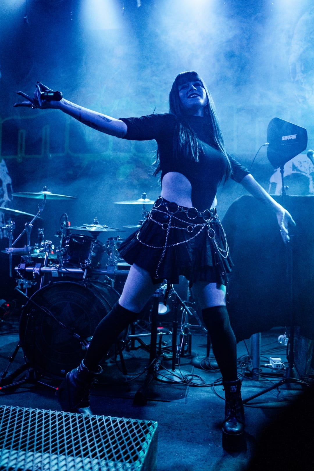 Treasvre was a standout act on the bill, mostly due to them being so different musically from the other groups. There were electronic elements, but they were more of an atmospheric rock group with an artsy vibe. Not surprisingly, as they hail from San Francisco, CA. The group did their best grabbing the audience’s attention as both singers and guitarists jumped the barricade at times, playing songs from the crowd. Singer & bassist Samantha Peña closed off the set with their track “Devils,” with an intense and emotional vocal display.
