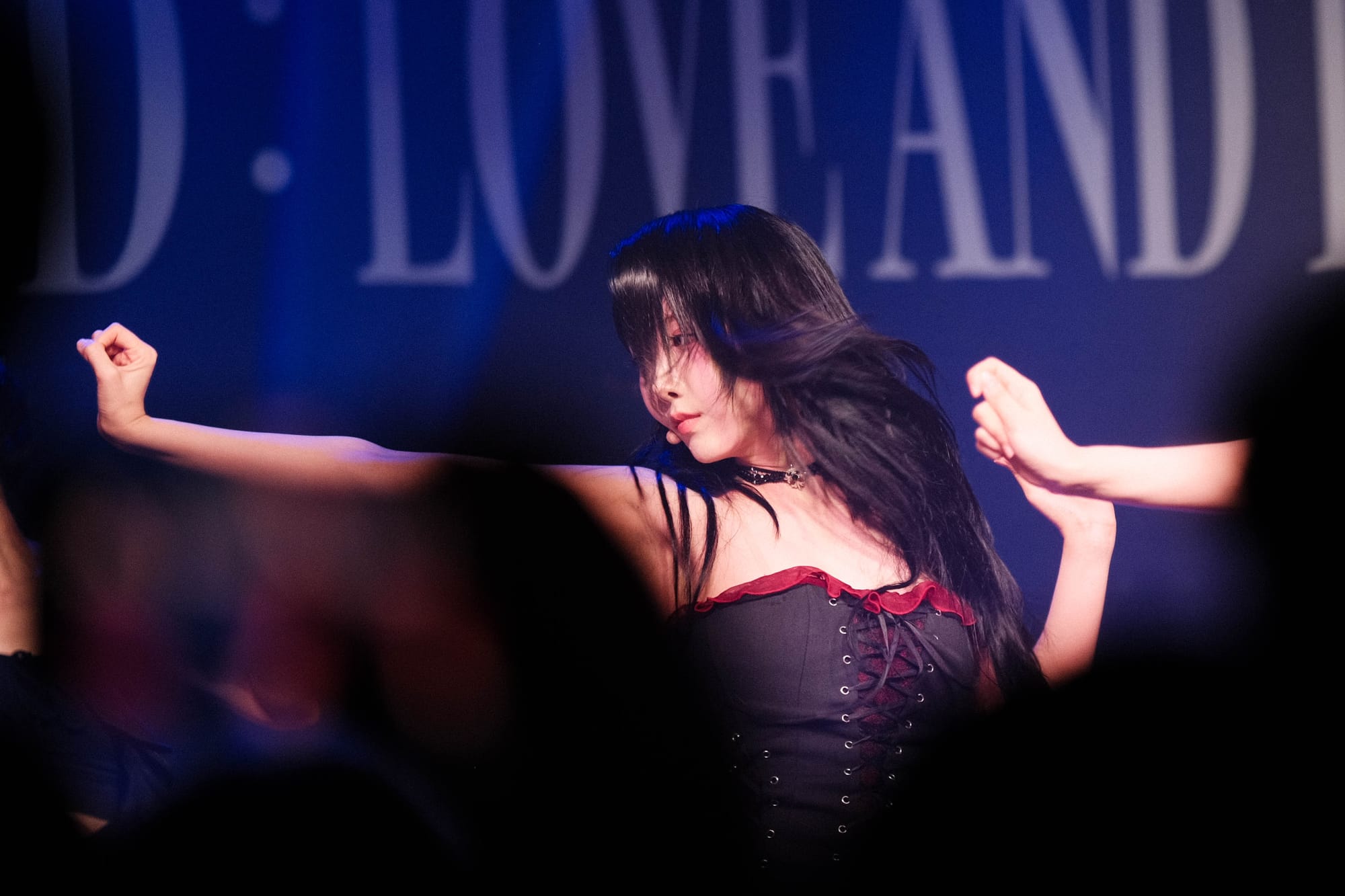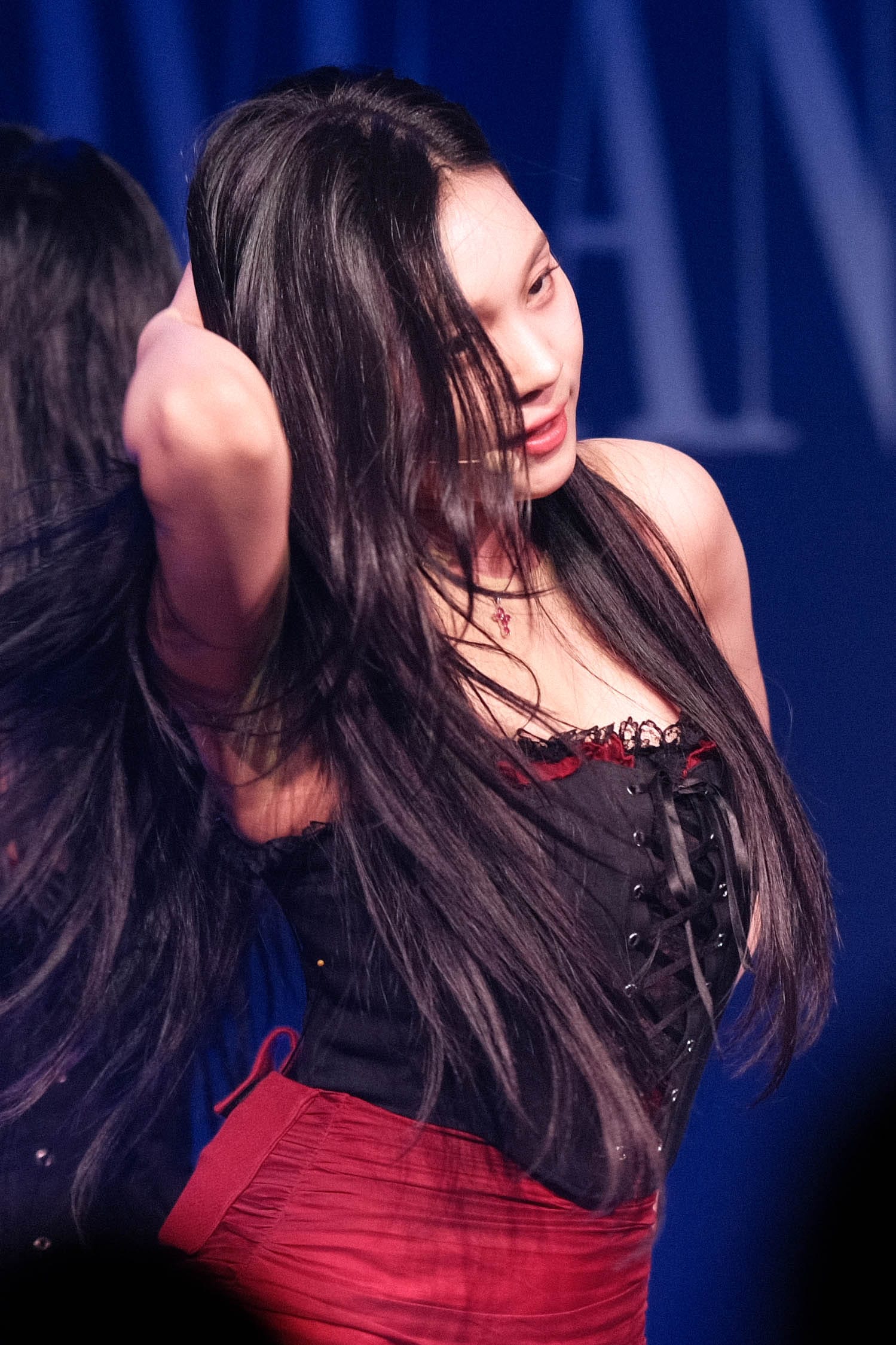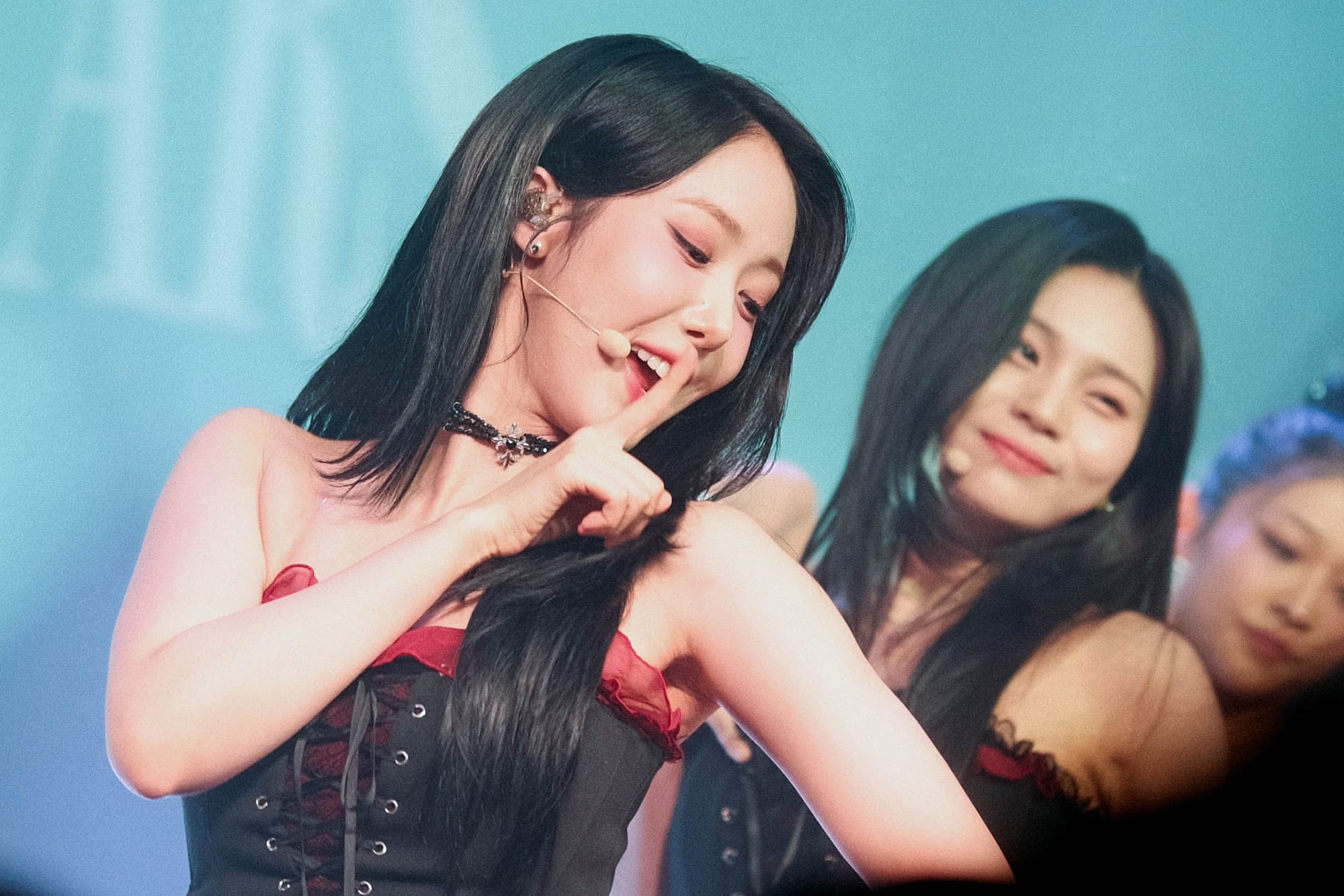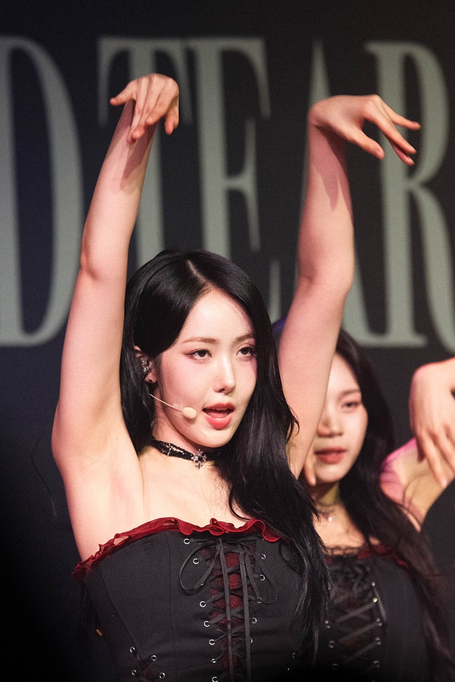 Soon, the members appear donning Victorian dresses. The dramatic church lights emphasize their ethereal looks. They start their set with “Untie,” a pulsating electronic track peppered with seductive soft vocals. The dancing is intense, and the choreography is complex. They follow up with “Blue Clue,” a jazz-inspired song that has a lighter, but equally difficult, cabaret-style choreography.