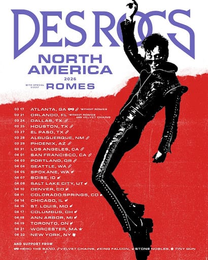 I can sit here all day telling you how Des Rocs lives up to the Shawnee legend Link Wray, but only his music does him justice. Go give “When The Love Is Gone” a listen and see what I mean for yourself. Preferably, you would do it behind the wheel of the largest automobile you can get your hands on while screaming down a two-lane backroad, but in a pinch, listening to it anywhere where you can crank it to max volume without pissing off your neighbors will do. Or do it somewhere you will piss off your neighbors; I don't care, I'm not your mom. After you're done dealing with the noise complaint, you can catch Des on tour, but get your tickets quick; those dates are coming up. Before you know it, he will already have blown through your town.